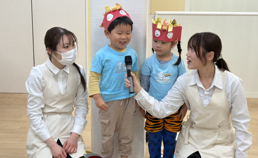 節分会を行いました。 全園児が集まり、それぞれのクラスのお面紹介をしました♪
